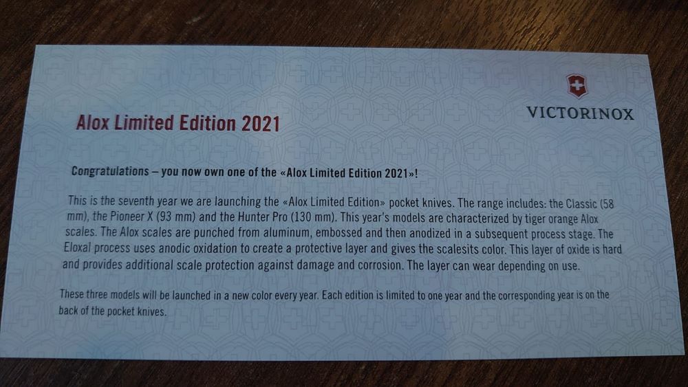 Victorinox Annual Alox LE - Information Sheet 2021