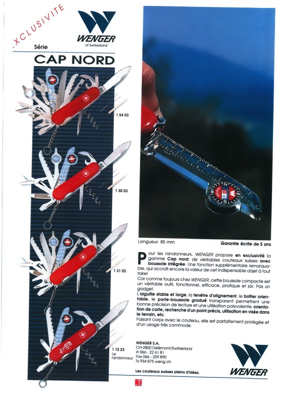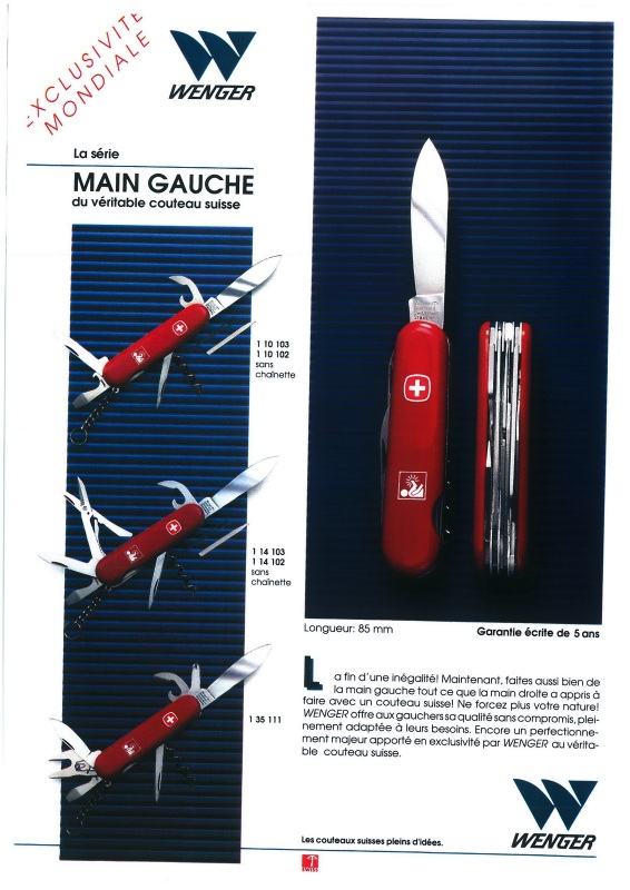 Wenger product sheets (in French) obtained from a European Dealer dated 1993-1995 and some undated. Original digital documents obtain by "basilio" (multitool.org).
