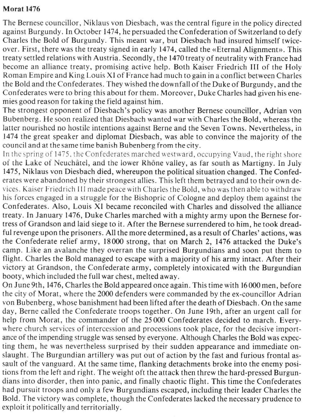 Released in 1989 to commemorate the Battle of Murten in 1476, and to honour the canton of Berne. The canton of Berne was at the forefront of the battles against the attacking forces of Charles the Bold of Burgundy. The scene on the top scale inlay shows the Swiss infantry on the left bearing the banners of Schwyz, Berne, and Zurich, and the cavalry of the invading Burgundian forces fleeing on the right. In the background is the town of Murten (Morat), formerly besieged by the Burgundians and partly in flames.