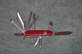 The original version is old enough to be found with a Victoria tang stamp on the back of the blade, and features tools from that era such as the small clip-point blade, and the original version of the fine screwdriver.