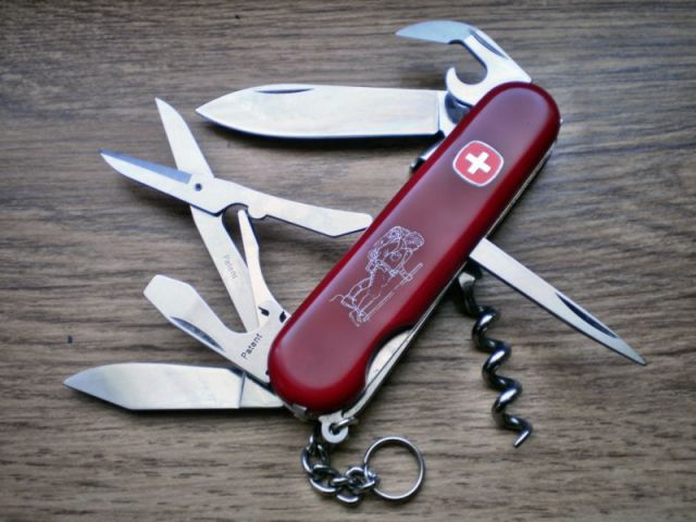 - Climber - Victorinox model; corkscrew replaces Phillips Screwdriver, newer models add multi-purpose hook