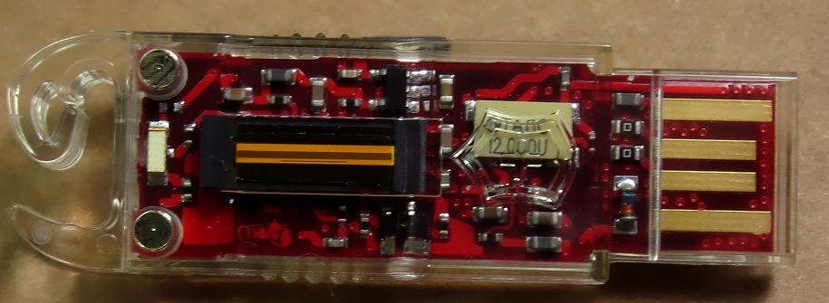 The original version of the flash drive was manufactured by Swissbit. It is compatible with SecureLock software that provides password protection to secure the contents of the device. A small green LED in the housing of the device is on when it is connected to the computer and idle. The light briefly turns off when the device is being accessed. It also turns off when the device can be safely removed from the USB port.