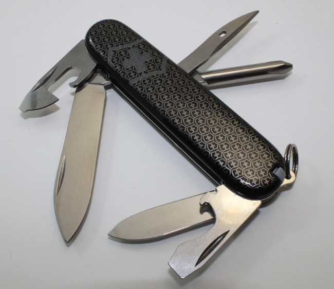 This series officially consisted of four black-handled models: a Classic SD, a Waiter, a Spartan and a Climber. All had the Victorinox cross and shield emblem printed in gold, in a contiguous, repeating pattern on the handles. The pattern matches the pattern on the 125th Anniversary Jubilee Series, (although these models had red handles). A Tinker Small is also known - additional information required).