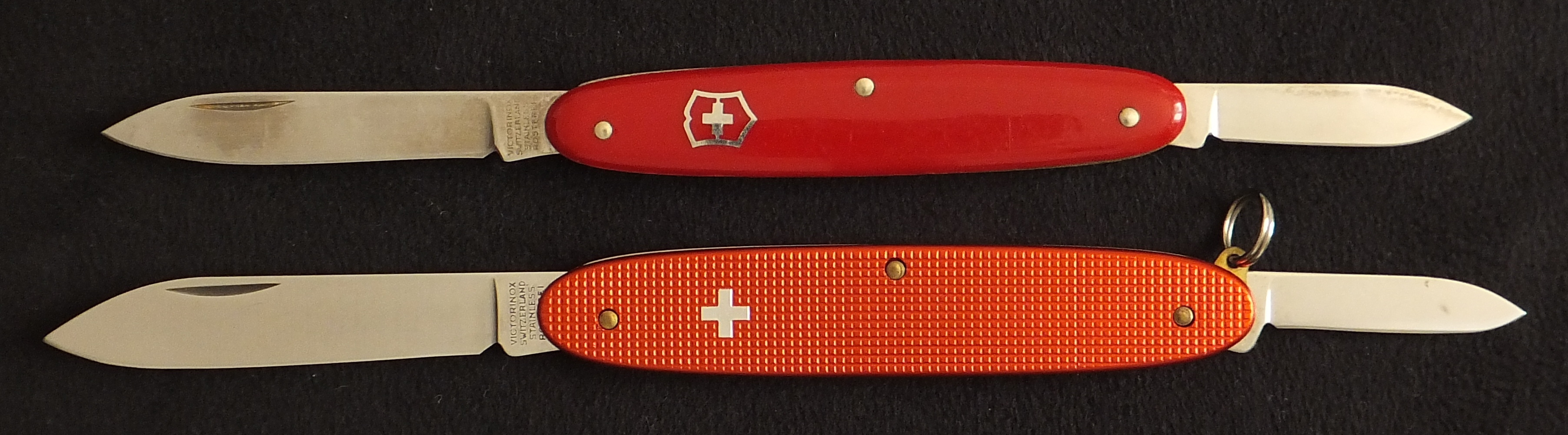 Photos of vintage Victorinox 75mm knives.
