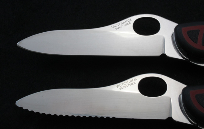 Victorinox 111mm Liner-lock (plain-edge) and Slide-lock (partially-serrated) Blade Comparison