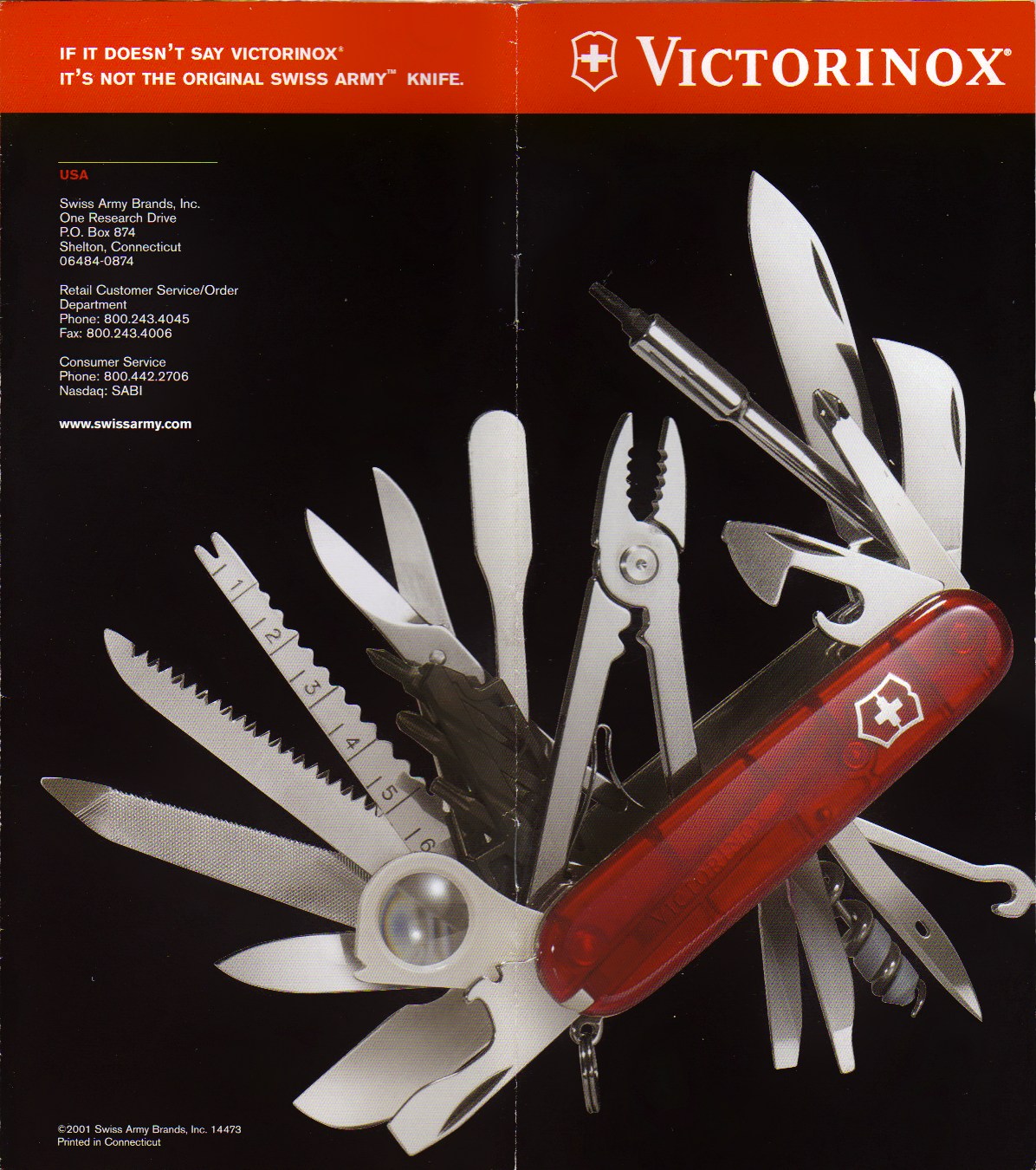 A 2001 Victorinox catalog printed by Swiss Army Brands (US Importer).